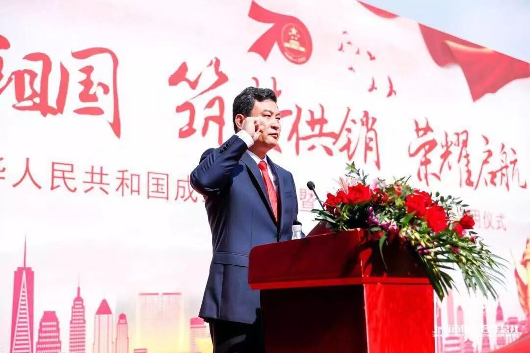 全体员工在理事会主任张华的带领下进行庄严的宣誓:“我们的使命是发展供销合作事业,共创城乡美好生活。我们的愿景是供销创新的践行者,城乡服务的主力军。我们的价值观是诚实守信、赋能成长、开拓创新、合作共赢。我们的企业精神是供销天下,合筑未来。”