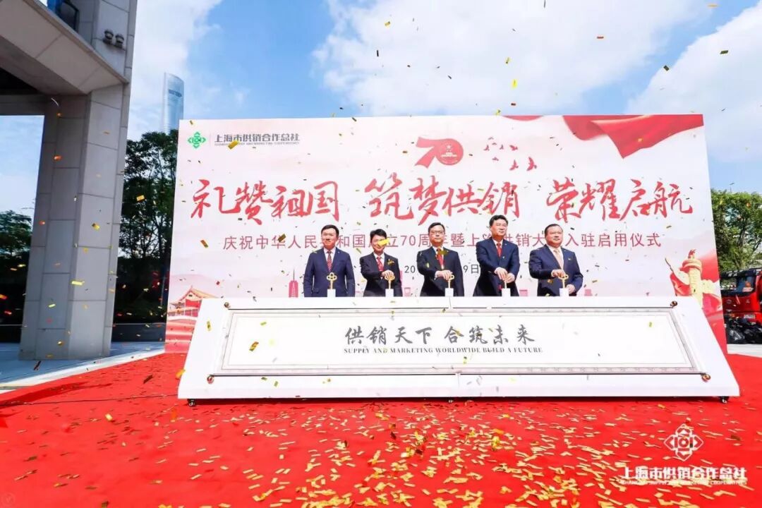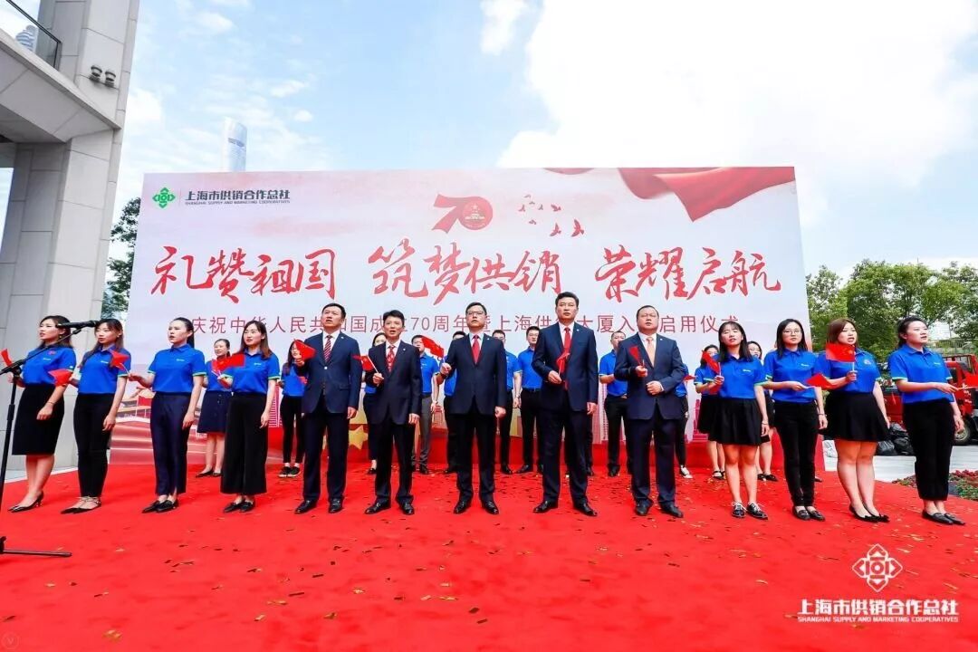9月29日下午,上海市供销合作总社庆祝中华人民共和国成立70周年暨上海供销大厦入驻启用仪式在上海供销大厦圆满举行。市社党委书记程颖、理事会主任张华、纪委书记岳凌军、财务总监王俊华、理事会副主任马晨辉、市社本部各处室、各直属企业干部员工200余人来到活动现场。