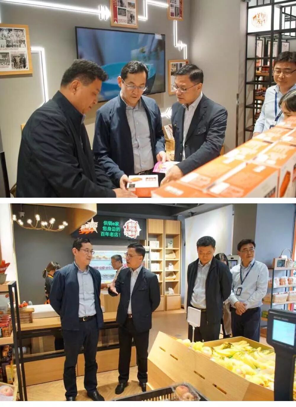 调研期间,白廷辉一行在市社党委书记程颖和理事会主任张华陪同下实地调研“供销e家”老字号品牌集成店天钥桥路店。白廷辉充分肯定了“供销e家”主动把握上海实施乡村振兴和 “四大品牌”建设战略机遇,集成全系统众多老字号品牌优势,传承与创新百年老字号金字招牌,积极探索走进社区的“为农服务”新模式,努力搭建深耕社区的“为农服务”新平台,更好地服务上海、服务长三角、服务全国。