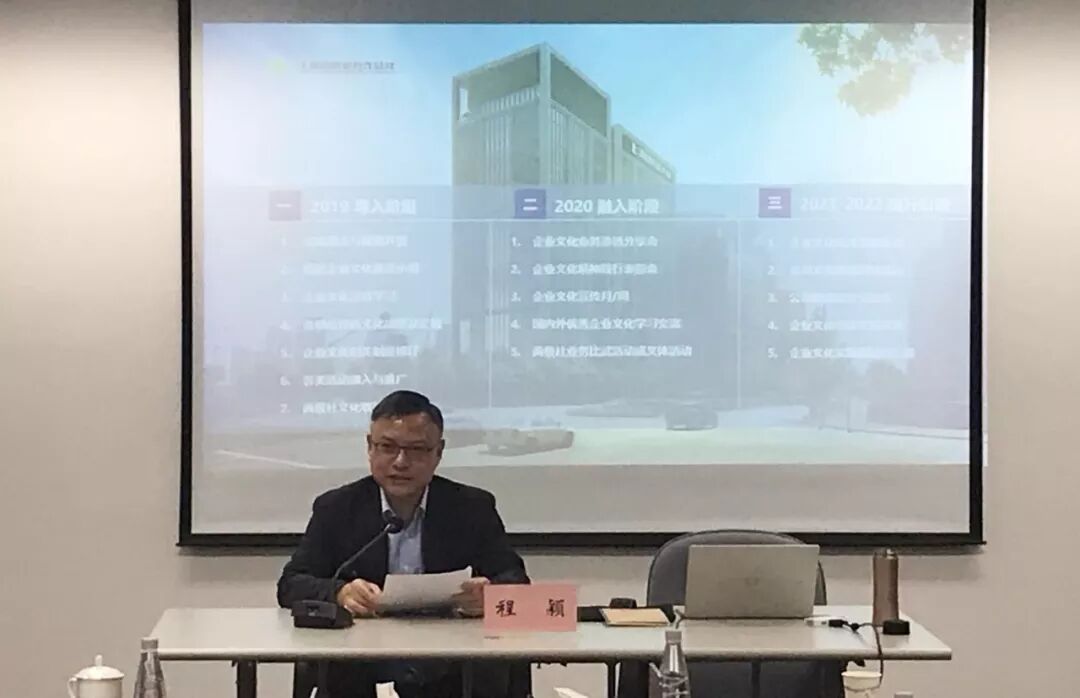 3月28日下午,市社党委召开中心组学习(扩大)会暨企业文化建设工作报告会。市社党政领导班子成员、各职能处室主要负责人、各区社党委书记、各出资企业党政主要负责人和党办主任,以及上海百年企业管理咨询有限公司专家团队等60余人参加了会议。市社党委书记程颖出席会议并讲话,会议由市社党委委员、工会主席、党群办主任姜伟主持,百年公司孟宪忠教授、赵金强总经理分别作了项目专题报告。