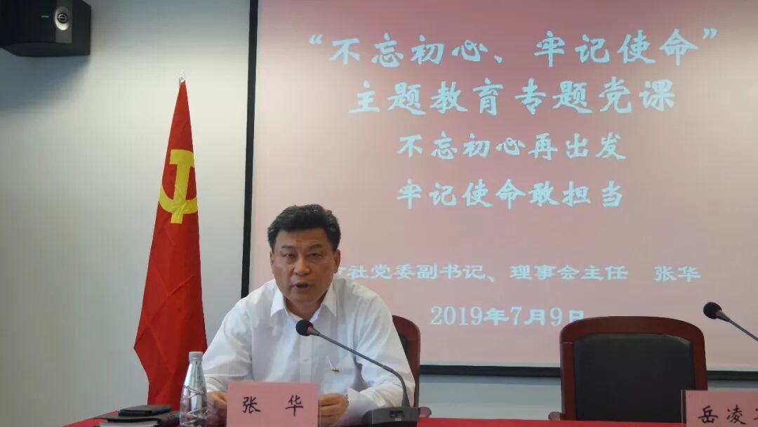 7月9日下午,市社党委举行“不忘初心、牢记使命”主题教育专题党课,市社党委副书记、理事会主任张华为全体党员领导干部上了题为“不忘初心再出发 牢记使命敢担当”专题党课。市委第二十巡回指导组相关同志到会指导,市社纪委书记岳凌军主持会议,市社党政领导班子成员、市社助理以上处室负责人、各直属单位领导班子成员和党群办主任参加会议。